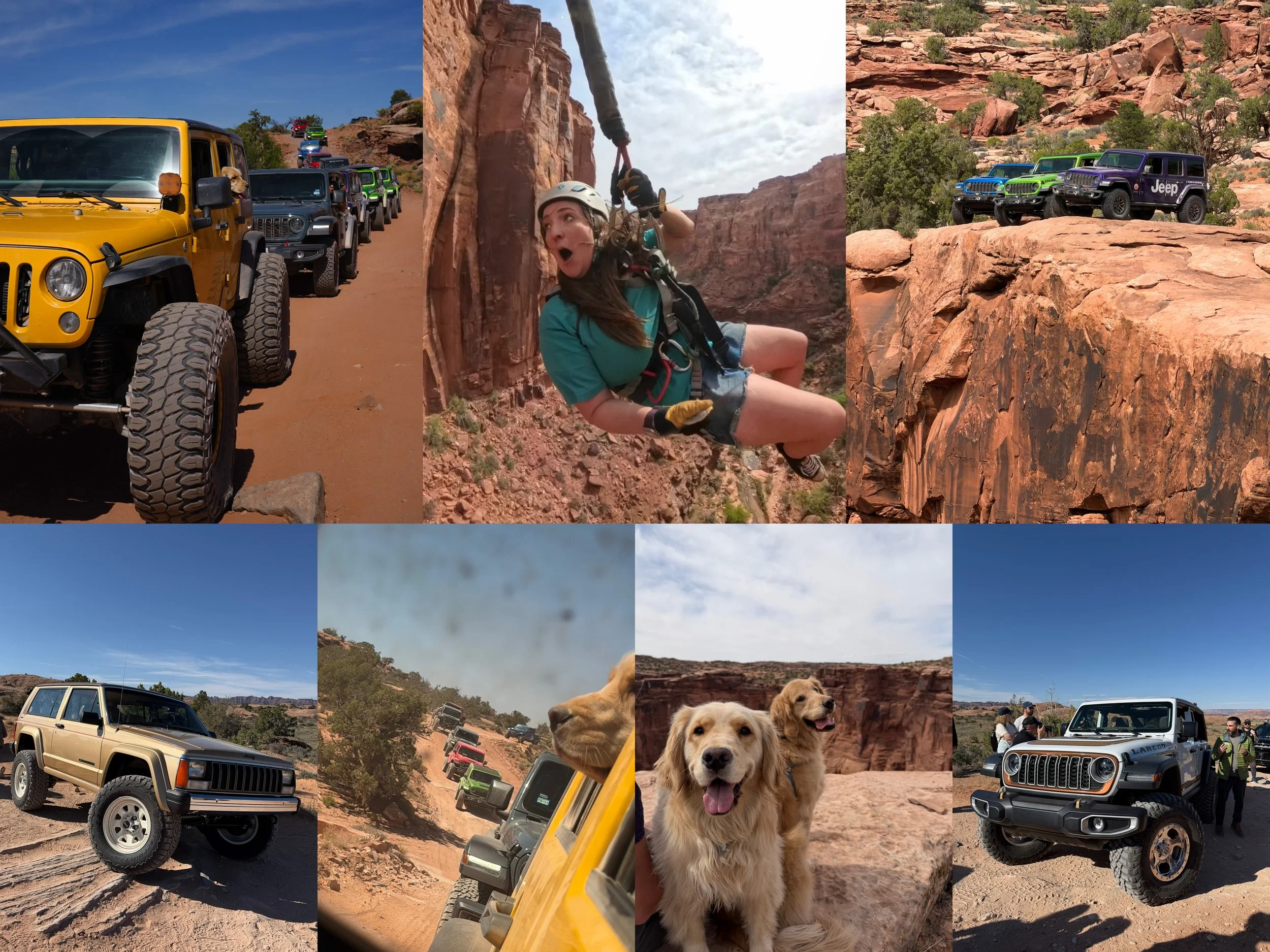 On Monday morning, everyone got in their Jeep company vehicles and me in my own Jeep, and we convoyed out to see the concept vehicles. Every year, Jeep creates concept vehicles specifically for Easter Jeep Safari, but since this was the 60th anniversary of EJS, they also brought a lot of the old concepts back. We got a presentation on each one, then learned environmental tips about how to responsibly off-road in the desert. From there, we ran trails as a large group up Gemini Bridges and headed to our destination of the Moab Rope Swing.